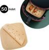 50 Adet Air Fryer Pişirme Kağıdı Tek Kullanımlık Hava Fritöz Yağ Geçirmez Yapışmaz Gıda Pişirme Kağıdı Delikli Kare Model