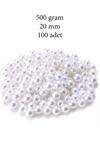 | 500 gram 20mm Beyaz Renk Plastik İnci Boncuk Çanta ve Takı Yapım Boncuğu (~100 adet) |
