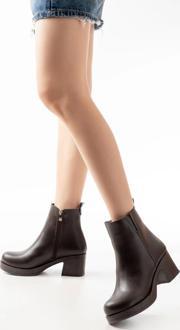Morotonom 5109-3057 Kahverengi Lastikli Fermuarlı Kalın Topuklu Günlük Kadın Bot