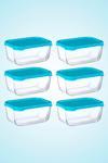 #Mutfakta Yardımcı; 6 Adet Mavi Kapaklı Dikdörtgen Saklama Kabı ve Servis Kasesi; Kapaklı Kullanım ile Yiyeceklerinizi Daha Uzun Süre Taze Tutar.; Kapaksız Kullanım ile Kahvaltı Sofralarınız İçin İdeal Bir Servis Kasesidir.; Leke ve Koku Tutmaz, Kolay Temizlenir.; Kullanımı Kolay, Sade ve Pratik Şeffaf Saklama Kabı; İç İçe Geçen Tasarımı Sayesinde Kullanılmadığında Daha Az Yer Kaplar; Hacim: 420 cc.; Ağız Çapı: 120x91 mm.; Yükselik: 58 mm.; #Cam Sağlıktır.;