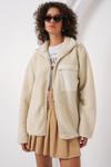 55446 Fermuarlı Oversize Peluş Ceket Mont - Krem