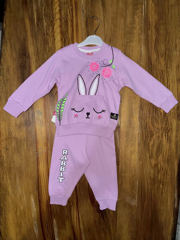 - Mor renkli takım, üzerindeki tavşan deseni ile dikkat çekici bir görünüme sahiptir.