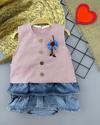 6-9-12-18 Ay Gül Rozet Detaylı Kot Kilotlu Etek Kız Bebek Elbisesi Gül Kurusu