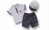 6-9 9-12 12-18 Ay Vip Yaka Şapkalı Kısa Kollu Sweat 3lü Erkek Bebek Takımı Gri