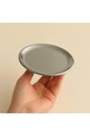 12 cm çapında gümüş renkli paslanmaz çelikten üretilmiş, dayanıklı ve şık bir sunum tabağıdır.