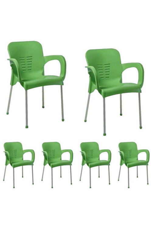 Nar Sokağı 6 Adet Metal Ayaklı Plastik Sandalye Koltuk Yeşil