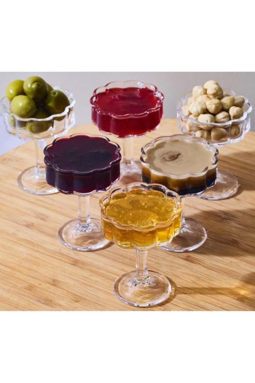 - 6 Adet Mini Cam Kahve Yanı Lokumluk Draje Şekerlik Sunumluk Takımı