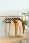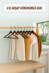 Doğal görünümüyle şıklık katan 6’lı ahşap görünümlü kahve askı seti, gardırobunuzda estetik bir düzen sağlar.
