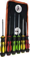 Bez Çantalı Renkli - Kauçuk Kaplama Saplı Darbeli 6lı Set Çift Taraflı Tornavida Takımı
