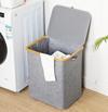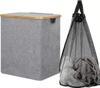 60 Lt Katlanır Kumaş Bambu Çamaşır Sepeti İçi Fileli Kirli Çamaşır Sepeti