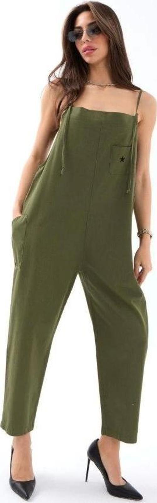 Keten Askılı Büyük Cep Detaylı Kadın Salopet Tulum - Image 1