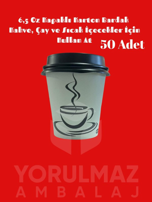 Yorulmaz Ambalaj 💥 6,5 Oz Kapaklı Karton Bardak 50 Adet – Kahve Ve Sıcak İçecekler İçin Sızdırmaz, Tek Kullanımlık