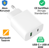 Qasul 65W 2 Portlu Hızlı Şarj Adaptörü QC 3.0 + PD, Kompakt ve Güvenli Tasarım Telefon, Tablet ve Laptop