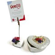 El Yapımı Kalpli Dekoratif Kapaklı Mini Kutu ve Notluk 2'li Set, ev dekorasyonunda şıklık ve fonksiyonelliği bir araya getiren özel tasarım ürünlerden oluşur. Polyester malzemeden üretilen bu set, el işçiliğiyle akrilik boya ve su bazlı vernik kullanılarak boyanmış olup, uzun ömürlü ve dayanıklı bir yapıya sahiptir. Kalpli dekoratif kapaklı mini kutu, 8 cm en ve 3 cm yükseklik ölçüleriyle küçük takılar, yüzükler veya özel eşyaların düzenli ve güvenli şekilde saklanmasına olanak tanır. Üzerindeki kabartma kalp ve çiçek motifleri, nostaljik ve estetik bir görünüm sunar. Kilitsiz kapak tasarımı sayesinde kolayca açılıp kapanabilir ve masa, komodin ya da raf üzerinde dekoratif obje olarak kullanılabilir. Setin diğer parçası olan kalpli dekoratif notluk ise 12 cm yükseklik, 5 cm en ve derinlik ölçüleriyle notlarınızı, hatırlatmalarınızı veya fotoğraflarınızı sergilemek için ideal bir çözümdür. Kompakt ve hafif tasarımı sayesinde evde veya ofiste rahatlıkla kullanılabilir. Her iki ürün de el yapımı ve özel tasarım olup, ev düzenleme ve saklama ihtiyaçlarınıza zarif bir dokunuş katar. El Yapımı Kalpli Dekoratif Kapaklı Mini Kutu ve Notluk 2'li Set, hem işlevsel hem de estetik bir ürün arayanlar için mükemmel bir tercihtir ve sevdiklerinize anlamlı bir hediye alternatifi sunar.