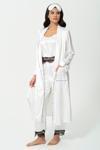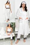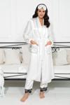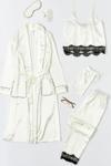 For You Sleepwear 6'lı Dantel Detaylı Sabahlıklı Ekru Pijama Takımı markamızın sizin için tasarlanan ve 6 parçadan oluşan, satenin muhteşem yumuşacık dokusuyla teninizde çok rahat bir hisle giyebileceğiniz bu setimiz iç atleti uyku gözlüğü çantası tokası, dantel ile süslenmiş uzun bir alt ve şık uzun bir sabahlığın birlikteliğinden oluşuyor.