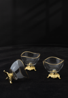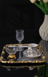 Kahve ve çay sunumlarına lüks bir dokunuş katan altın detaylı cam lokumluk & sosluk seti, kristal parlaklığındaki camı ve döküm, ince desenli ayak tasarımıyla sofranıza şıklık katar. Lokum, çikolata, şekerleme ve sos servisleri için idealdir; dekoratif amaçla da kullanılabilir.