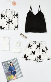 For You Sleepwear Tatlı mı tatlı rengiyle sevgini kazanan Köpek desen Detaylı Saten 6 parçadan oluşan Pijama Takımı ile evde de göz kamaştırmaya hazır mısın? Bu Saten Pijama Takımı, uyku gözlüğü,tokası,kesesi ,Gömleği ve şortun uyumlu birlikteliğinden oluşuyor. Biyeli detaylarla süslenen, şık duruşuyla ve köpek desenli baskısı ile güzelliğini taçlandırıyor. Saten kumaşın benzersiz dokusuyla tenine sıcacık dokunuşlar yapan bu Takım, konforlu yapısıyla huzurlu uykular vadediyor.