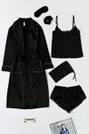 For You Sleepwear 6'lı Leopar Biye Detaylı Sabahlık Atlet Şortlu Siyah Takım markamızın çok şık ve sizin için tasarlanan ve 6 parçadan oluşan harika takım ile evde ve dışarıda geçireceğiniz günlerde size eşlik edecek muhteşem bir takımdır. Satenin muhteşem yumuşacık dokusuyla teninizde çok rahat bir hisle giyebileceğiniz bu setimiz iç atleti şortu uyku gözlüğü, çantası, tokası, beyaz biye ile süslenmiş sabahlığı, atleti, alt şortun birlikteliğinde oluşuyor.