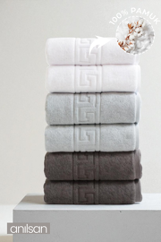 Havlularımız %100 saf pamuktan üretilmiştir ve bu sayede cildinize zarar vermeden yumuşak dokusuyla maksimum konfor sağlar ve pamuk olması, yüksek emiciliği ve hızlı kuruma özelliği ile de dikkat çeker.; ; ; Greek Havlumuzun boyutu 50x90 cm ve ağırlığı 225 gr'dır ve bu ölçüler, el havlusu olarak kullanım için uygun olup, saçınızı kurutmak ve günlük hijyen ihtiyaçlarınızı karşılamak için uygundur.; ; ; Yüksek emicilik özelliği sayesinde havlularımız suyu hızlıca emer ve kısa sürede kurur, bu da kullanım süresini kısaltır ve hijyen sağlar ve kaliteli pamuk iplikleri ile dokunan havlularımız uzun ömürlüdür ve defalarca yıkamaya karşı dayanıklıdır ve renkleri solmaz, dokusu bozulmaz.; ; ; Greek el havlumuzun 50x90 cm boyutu çeşitli kullanım alanları sunar ve bu ideal ölçüler, saçınızı nazikçe kurutmak, yüzünüzü temizlerken veya makyajınızı silerken rahatça kullanmak için uygundur ve ayrıca el yıkadıktan sonra ellerinizi kurulamak, yüz ve vücut bakım ürünlerinin ardından kullanmak için pratiktir ve hafifliği ve kompakt boyutu sayesinde seyahatlerde ve spor sonrası kolayca taşınabilir ve günlük kişisel bakım ihtiyaçlarınızı karşılamak için iyi bir seçenektir.; ; ; Havlularınızı 60 dereceye kadar makinada yıkayabilirsiniz ve renkli ve beyaz havluları ayrı yıkamanız önerilir ve düşük ısıda kurutulabilir ve doğrudan güneş ışığına maruz bırakmadan kurutmanız tavsiye edilir.; ; ; Bornozlarımız OEKO-TEX® Standard 100 sertifikasına sahiptir ve bu sertifika, ürünlerimizin zararlı kimyasallar içermediğini ve güvenle kullanılabileceğini gösterir.; ; ; Havlularımız çevre dostu üretim süreçleri kullanılarak üretilmektedir ve enerji tasarrufu ve su verimliliği gibi sürdürülebilir uygulamalarla çevreye olan etkimiz azaltılmaktadır.; ; ; Zarif tasarımıyla, el havlularımız banyonuza hem fonksiyonel hem de estetik bir dokunuş katar ve günlük kullanım alanlarınızı düzenleyebilir ve kişiselleştirebilirsiniz.; ; ; Mağazamızda sunduğumuz özel indirim ve kampanyalardan haberdar olmak için bizi takip etmenizi öneririz ve en güncel fırsatları ve avantajları kaçırmamak için mağazamızı ziyaret edin ve kaliteli ürünlerimizdeki fırsatları keşfetmek için sizi bekliyoruz.; ; ; Siparişleriniz iş günü içinde hemen kargoya verilir ve Türkiye'nin her yerine hızlı ve güvenli teslimat sağlanır.