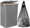70 Lt Katlanır Kumaş Bambu Çamaşır Sepeti İçi Fileli Kirli Çamaşır Sepeti