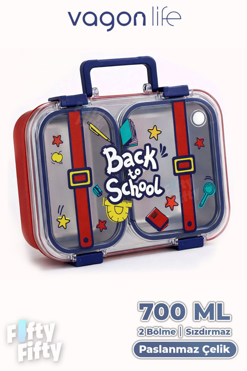 Vagonlife 700 ML İki Bölme Paslanmaz Çelik Bento Lunch Box Yeni Nesil Sefer Tası Metal Kaşık Hediyeli FF7155