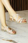 - Çapraz bant detayı ile modern ve trend bir görünüm kazandırırken, metal topuk detayları ile sofistike bir dokunuş ekler.