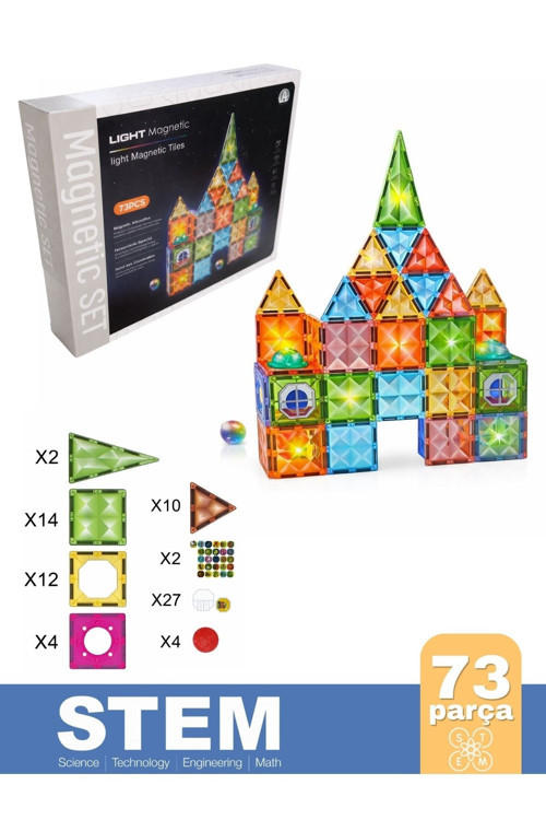 Çocukların hayal gücünü ışıkla buluşturan 73 parçalık ışıklı manyetik yapı seti ile eğlenceli ve öğretici oyun deneyimi! Renkli ve LED ışıklı manyetik parçalar sayesinde çocuklar kendi parlayan kalelerini, evlerini ve 3D yapılarını kolayca oluşturabilir.