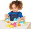 Üzerinde farklı yüz ifadeleri bulunan ve kafasına basınca cik cikleyen bu rengarenk sevimli civcivlerin kabuklarını renklerine göre eşleştirin, tabanındaki şekillere göre yerlerine dizin.
