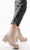 ZenaLook 767-3020 Bej Fermuarlı Kalın Topuklu Günlük Kadın Bot