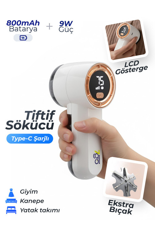 7Go 7G-MR1 LCD Ekranlı Şarjlı Tüy ve Tiftik Temizleme Cihazı - 9W Güçlü Motor, 6 Bıçaklı Kumaş Bakım