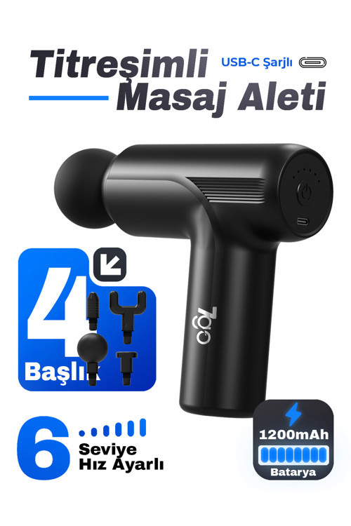 7GMG6 Mini Masaj Tabancası – 4 Başlık, 6 Kademe, 24W Güç, 1200 mAh Şarjlı Titreşimli Kas Masaj A