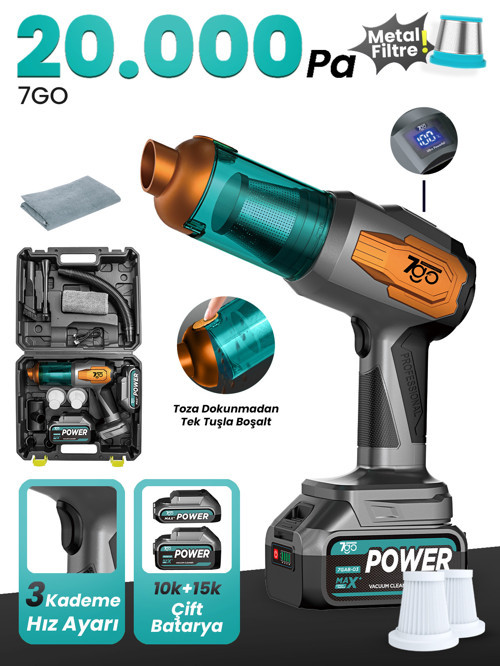 7GO 7GAB-03 Kablosuz Araç Süpürgesi, güçlü motor teknolojisi ve çift fonksiyonlu kullanım özelliği sayesinde aracınızda derinlemesine temizlik sağlar. Kompakt yapısı, hafif tasarımı ve yüksek performansı ile günlük kullanım için ideal bir çözümdür.