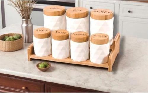 Şık ve fonksiyonel tasarımıyla 7'li Standlı Baharat Seti, mutfak düzeninizi tamamlayan zarif bir üründür. Beyaz seramik kapaklı baharatlıklar, modern ve minimalist bir görünüme sahiptir. Ahşap standı sayesinde düzenli kullanım sağlar ve mutfağınızda yer kaplamadan şık bir dokunuş ekler. Tuz, şeker, çay, kahve ve baharatları güvenle saklamak için idealdir. Kapakları sayesinde baharatlarınızı taze tutar ve hijyenik kullanım sunar.