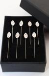 Numetal 8’li Badem taşlı beyaz, eşarp iğnesi. Şal iğnesi. Türban iğnesi. Başörtü iğnesi. Eşarp ve şal iğnesi