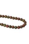 8 MM küre kesim unakit dizimizde yaklaşık 48 adet doğaltaş boncuk bulunmaktadır. Dizi uzunluğu ortalama 40 CM'dir.