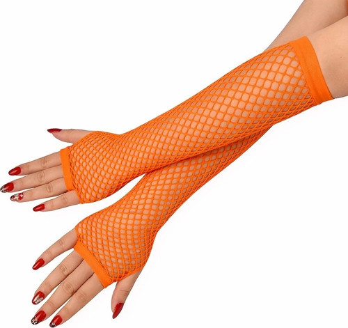 80&rsquoler 90&rsquolar Retro Neon Turuncu File Uzun Eldiven, canlı neon turuncu rengi ve file dokusuyla retro disco ve parti konseptlerinin vazgeçilmez aksesuarıdır. Uzun ve parmaksız tasarımı sayesinde kola rahatça oturur, hareket özgürlüğü sağlar.