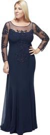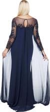 8028 Uzun Kollu Arkası Şifon Kuyruklu Abiye Elbise Lacivert