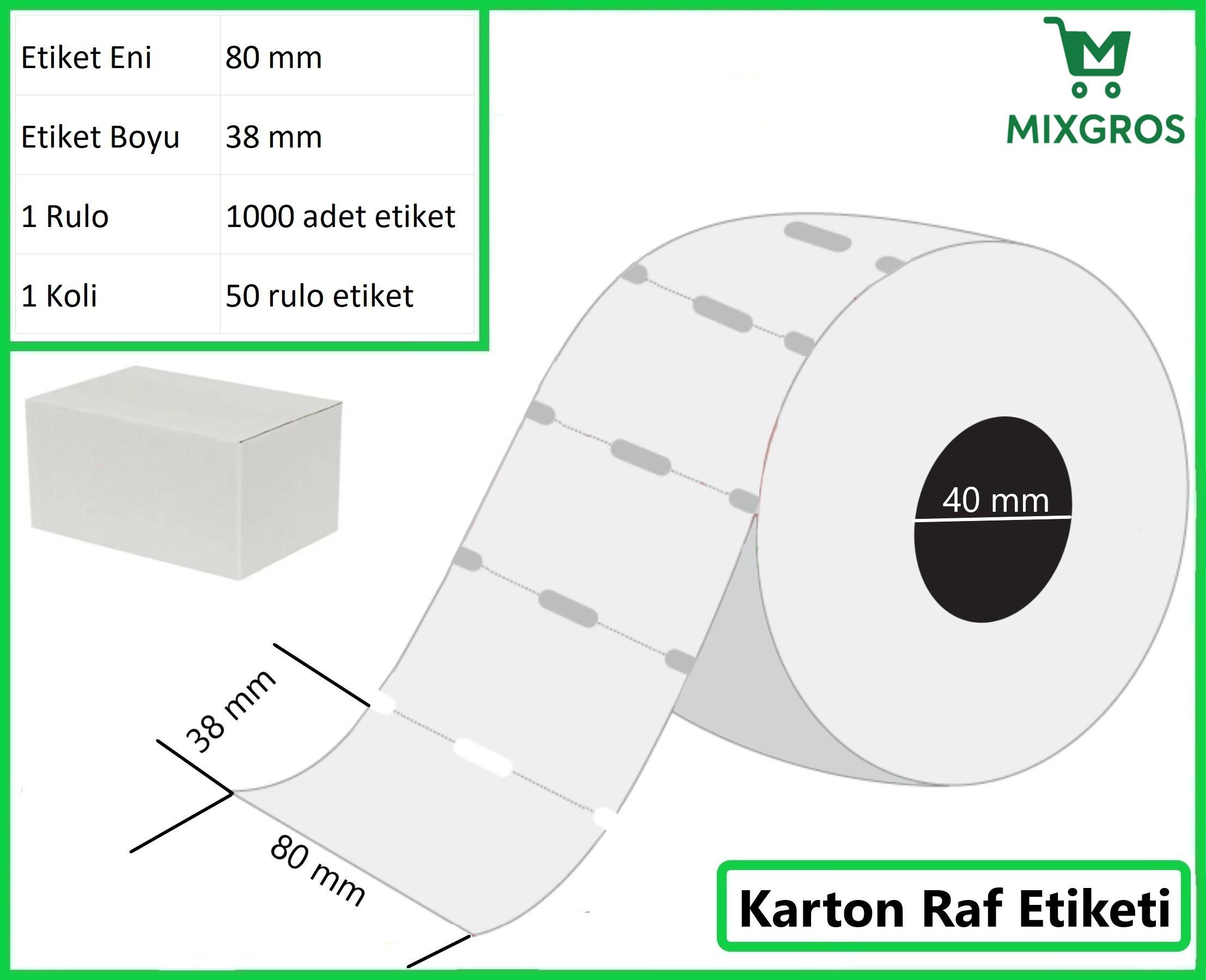Baskısız karton raf etiketi, karton termal diye adlandırılan hammaddeden üretilmektedir. İhtiyacınız olan raf etiketine Mixgros kalite ve güvencesi ile ulaşabilirsiniz. Karton termal hammadde, etiket ve barkod yazıcılarınız ile direk termal olarak yazdırabilirsiniz. Yırtılabilen üst yüzeyi mat, düz ve beyaz renkte olup ribonsuz basılabilen raf etiketi çeşididir. Üst yüzeyindeki termal kaplama sayesinde ısıya duyarlıdır ve ısıya maruz kaldığında kararmaktadır. Etiket barkod yazıcınız ile direk termal olarak çıktı alabilirsiniz.