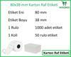 - 1 Koli: 50 rulo x 1000 adet = 50.000 adet etiket