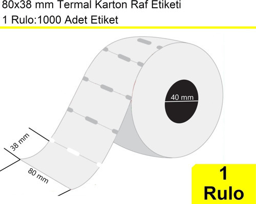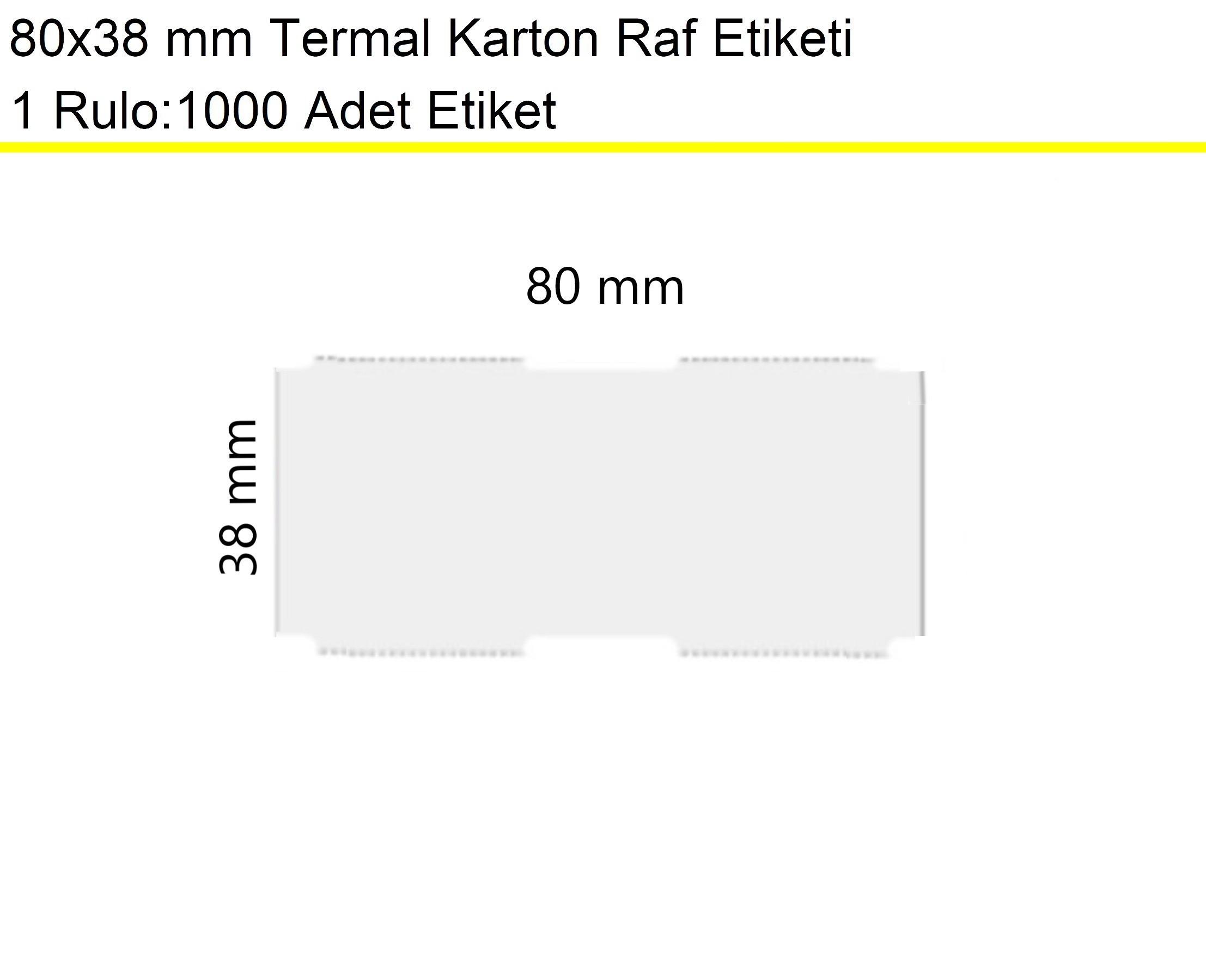 Akdenizpos 80x38 mm Karton Termal Raf Reyon Etiketi 1 Rulo: 1000'li Sarım Etiket 1 Koli: 50 Rulo Etiket