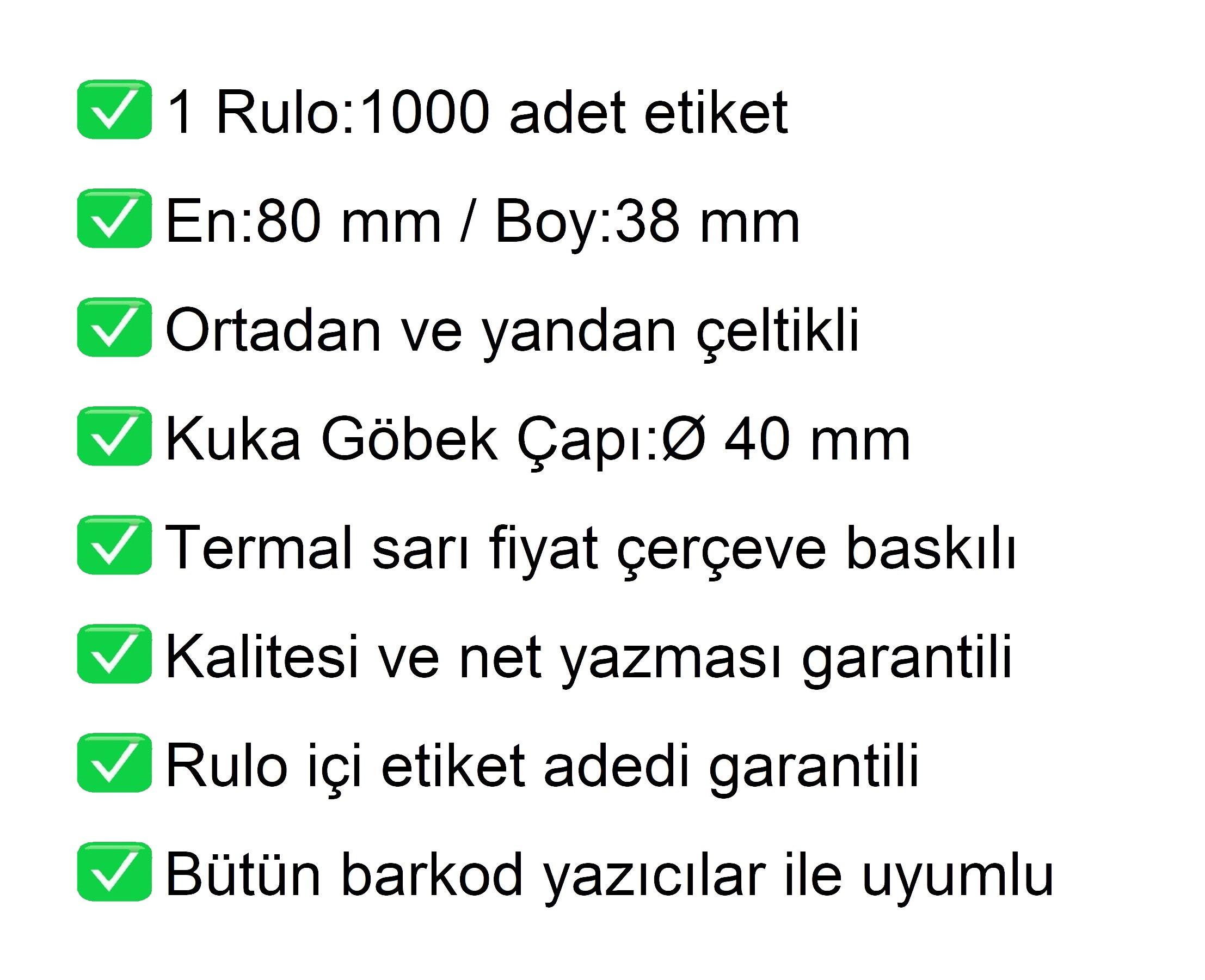 80x38 mm Sarı Çerçeveli Karton Termal Raf Etiketinin özellikleri ve açıklamaları aşağıda verilmiştir. Farklı ölçü seçenekleri ve daha fazla bilgi için mağazamızı ziyaret edebilirsiniz.