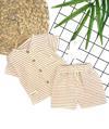 9-12-18-24 Ay Düğme Detaylı Çizgili Müslin Kumaş Yazlık 2li Erkek Bebek Takımı
