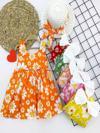 9-12-18-24 Ay Hasır Şapkalı Papatya Desenli Askılı 2li Kız Bebek Elbisesi Sarı