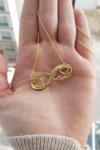 925 ayar gümüş malzeme ile üretilmiş, uzun ömürlü ve kaliteli bir aksesuar deneyimi sunar; 24 ayar altın kaplama ile zenginleştirilmiş, parlak ve şık bir görünüm kazandırır; Kalp şeklindeki tasarımıyla romantik ve anlamlı bir hediye seçeneği olarak öne çıkar; Sonsuzluk kolye, sevginin ve bağlılığın sembolü olarak özel günlerde tercih edilebilir;