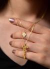 Maden : 925 Ayar Gümüş.Kaplama: Altın.Ürün Ağırlığı : 2,80 Gr ( +-). Gümüş ve değerli taşlar nedeniyle belirtilen ortalama ürün ağırlığında ± %5 sapma olabilmektedir.Zincir Uzunluğu: 45 cm. Teslimat: Ürün ahşap hediye kutusunda gönderilecektir.Kullanım: Parfüm,dezenfektan,çamaşır suyu gibi kimyasallardan uzak tutunuz.