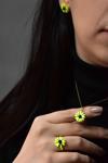 Maden Ayar: 925 Ayar Gümüş. Maden Kaplama: Altın. Yüzük Ağırlık: 2,35 gr. Küpe Ağırlık:2,50 gr. Kolye Ağırlık: 1,91 gr. Çap:1,5 cm. Yüzük Ölçü: Ayarlanır. Kolye Zincir: 42cm. Küpe: Çivili. Ürün Fosforludur.Teslimat: Ürün ahşap hediye kutusunda gönderilecektir.