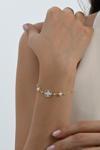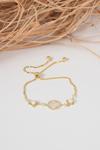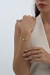 Söğütlü Silver 925 ayar gümüş altın yaldızlı inci, sedef ve zirkon taşlı asansörlü asil yonca gümüş bileklik [barcode]