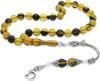 Tesbihane 925 Ayar Gümüş Ay Yıldız Püsküllü Küre Kesim Sarı-Siyah Ateş Kehribar Tesbih