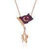 Bayrak; bir milletin varlığının ve bağımsızlığının sembolü, tarihinin hatırasıdır. Bayrağın değeri temsil ettiği milletin kıymeti ile ölçülür. Devletin hakimiyetini, bağımsızlığını ve şerefini temsil ettiği için bayrağa saygı gösterilir. Kırmızı zemin üzerinde hilal ve yıldız bulunan bayrağa efsanevi bir anlam katan inanış vardır. Osmanlıların 1448'de, düşmanlarını ağır bir yenilgiye uğrattığı Kosova savaşından sonraki gece; savaş alanında oluşmuş kan gölünün üzerinde gökyüzünden yansıyan hilal ve yıldız yan yana görünmüştür. Böylece sultan II Murad bu simgeyi devlet bayrakları arasında kullanmaya başlamıştır. Sizde sevdiklerinize gümüş türk bayrağı tutan çocuklar kolyeyi armağan edebilir onları sevindirebilirsiniz. Bayrak tutan çocuklar kolye modeli 925 ayar gümüşten imal edilmiştir. Gümüş üzerine rose kaplama yapılmıştır. Rose kaplama yapılan gümüş kolye modelleri parlaklığını uzun süre muhafaza eder ve oksitlenmesi gecikir. Gümüş kolyenin ortalama boyu 45 cm'dir. Tüm kolye modellerinde olduğu gibi gümüş bayrak tutan çocuklar kolye modeli de el emeği ile üretilmiştir. Gümüş ve değerli taşlar nedeniyle belirtilen ortalama ürün ağırlığında ± %10 sapma olabilmektedir.