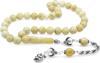 Gümüş Hediye Al 925 Ayar Gümüş Bozkurt Halat Püsküllü Küre Kesim King Seccer Beyaz-Sarı Damla Kehribar Tesbih